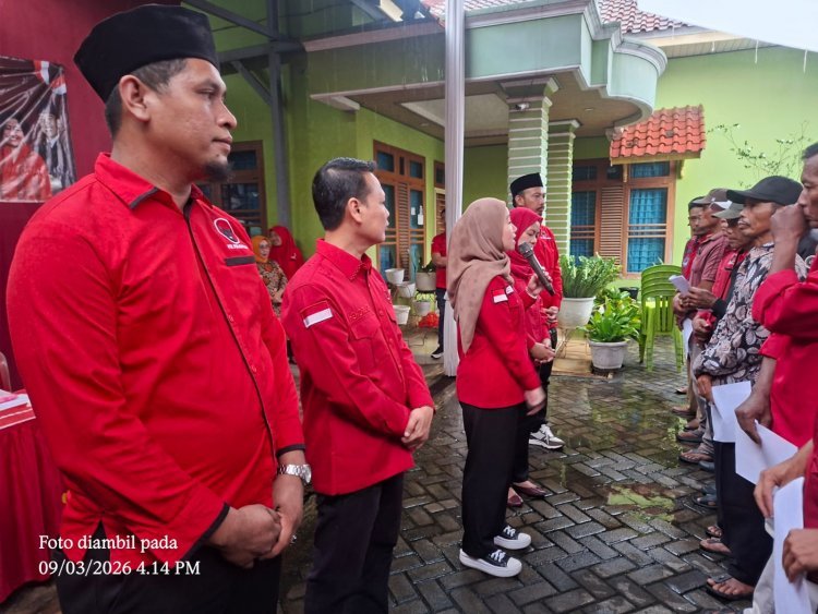 Natar - DPC PDI Perjuangan Lampung Selatan melakukan restrukturisasi perlahan di tingkat ranting. Senin, 9 Maret 2026, langkah awal akar politik PDI Perjuangan membentuk sekaligus melantik 26 komposisi pengurus ranting dari 26 desa di Kecamatan Natar.